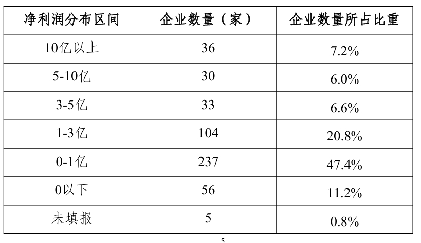 從經(jīng)濟(jì)效益來看,500強(qiáng)中,盈利企業(yè)數(shù)為440家、虧損企業(yè)56家、未填報(bào)企業(yè)4家,盈利企業(yè)占比88%,前100強(qiáng)的凈利潤總額為3017.7億元,占500強(qiáng)企業(yè)凈利潤總額的90.37%。其中,凈利潤超過10億元的制造業(yè)500強(qiáng)企業(yè)有36家,5億至10億元之間的有30家,3億至5億元之間的有33家,1億至3億元之間的有104家。