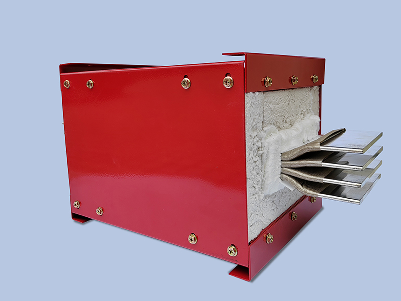 BJNC系列母線導(dǎo)體采用6mm厚的TMY銅排,表面包覆一層聚脂薄膜及一層陶瓷化耐火復(fù)合帶作為絕緣層,放入采用A3冷軋板62.0為材料的的第一層外殼,通過鉚釘將外殼固定,在第一層外殼四周再裹上兩層厚度為15mm的含鋯毯,然后鋪上25mm纖維板,最后放入第二層外殼中。BJNC系列母線槽均為單排母線,最大規(guī)格達(dá)到3200A。